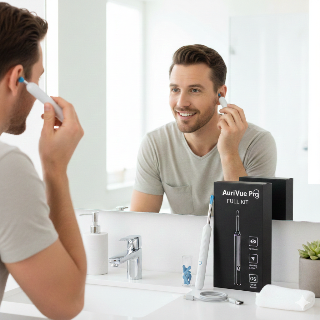 De AuriVue Pro is een geavanceerde oorwax removal kit met HD-camera en Wi-Fi-verbinding, ontworpen om veilig en effectief oorsmeer te inspecteren en te verwijderen. Met real-time videobeeld op je smartphone of tablet zie je precies wat je doet — dit maakt het veel veiliger dan traditionele methodes zoals wattenstaafjes.