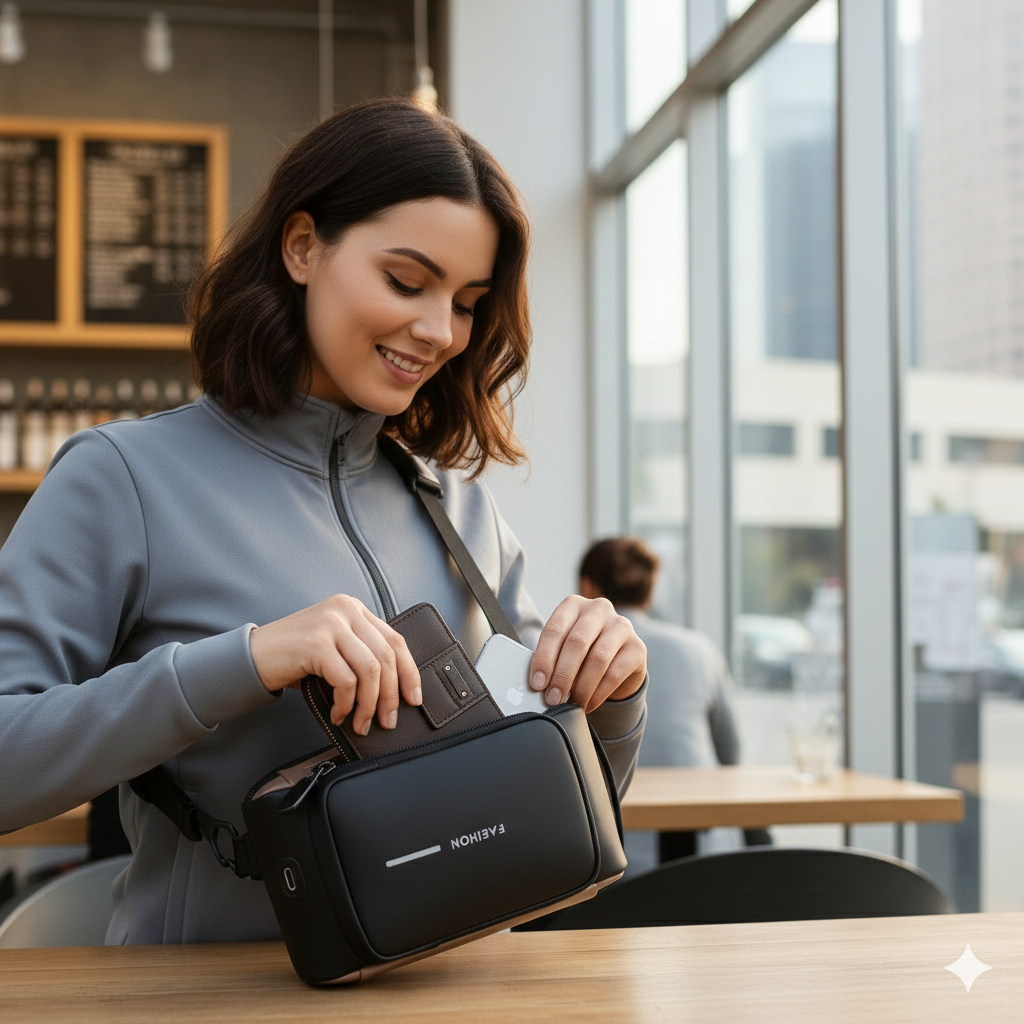 UrbanLock beschikt over meerdere ritsvakken, zodat je telefoon, portemonnee, sleutels en accessoires overzichtelijk en veilig opgeborgen blijven. Het anti-diefstal ontwerp helpt zakkenrollers te ontmoedigen en biedt extra gemoedsrust in drukke omgevingen zoals openbaar vervoer en toeristische hotspots.